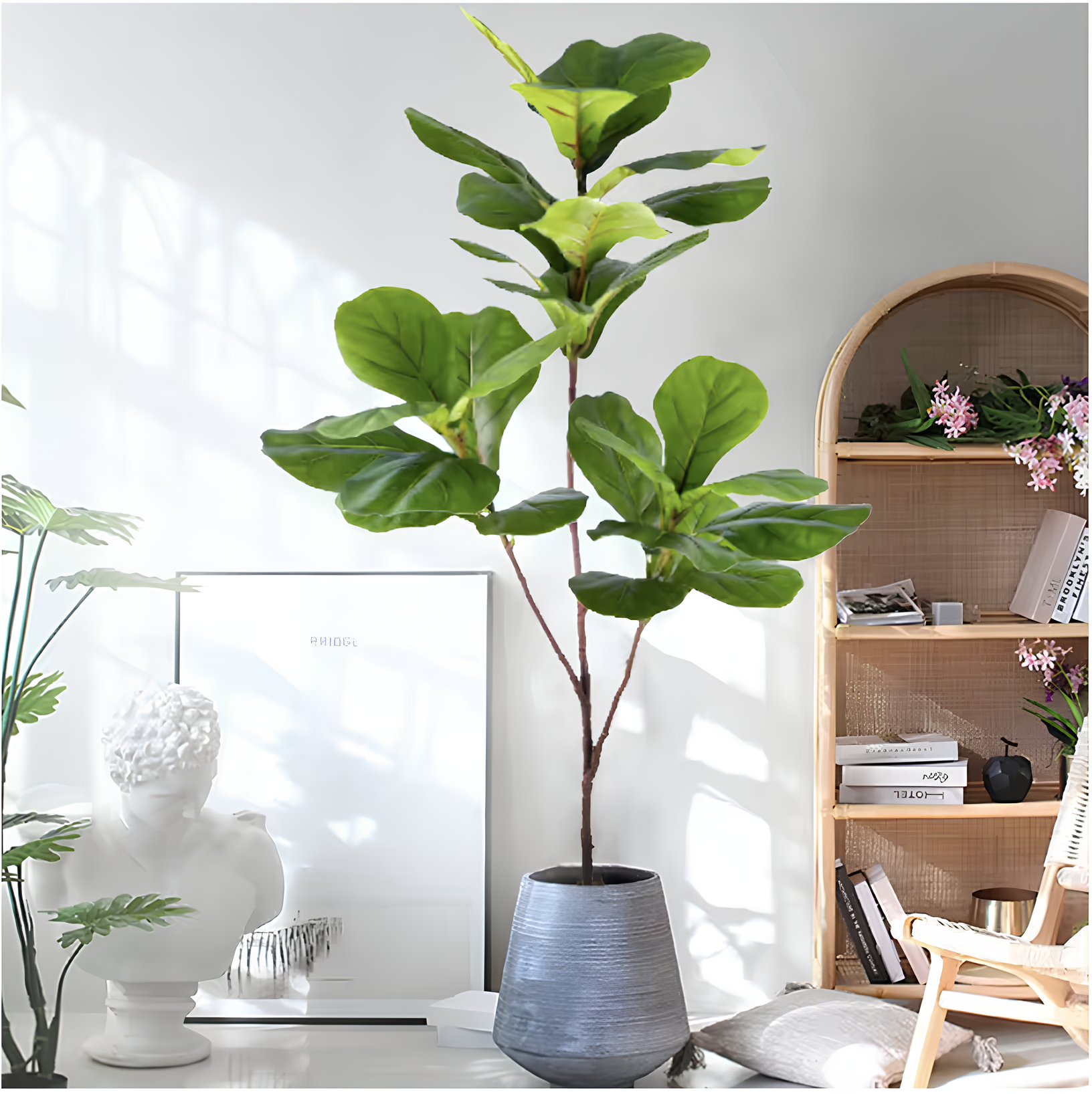 Pianta decorativa Foglia di Violino (Ficus lyrata), perfetta per interni dal design moderno. Le sue ampie foglie verdi aggiungono eleganza e freschezza a qualsiasi ambiente.