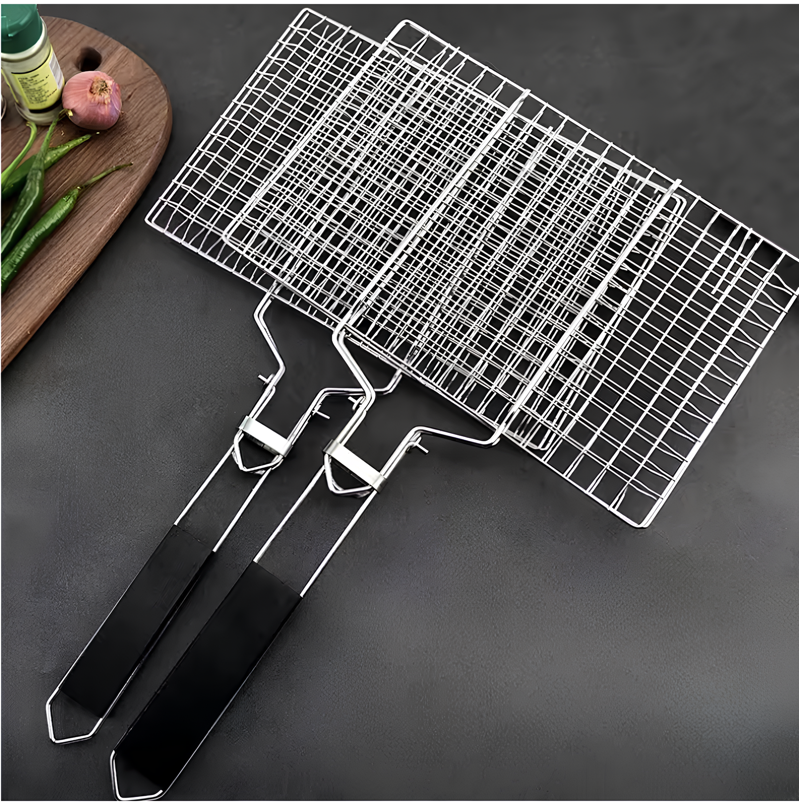 Griglia in acciaio inox resistente e antiaderente, ideale per una cottura uniforme e senza attaccare. Perfetta per barbecue e grigliate all’aperto.